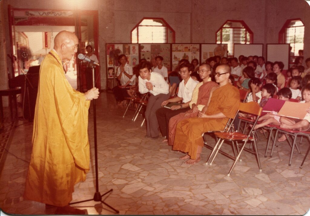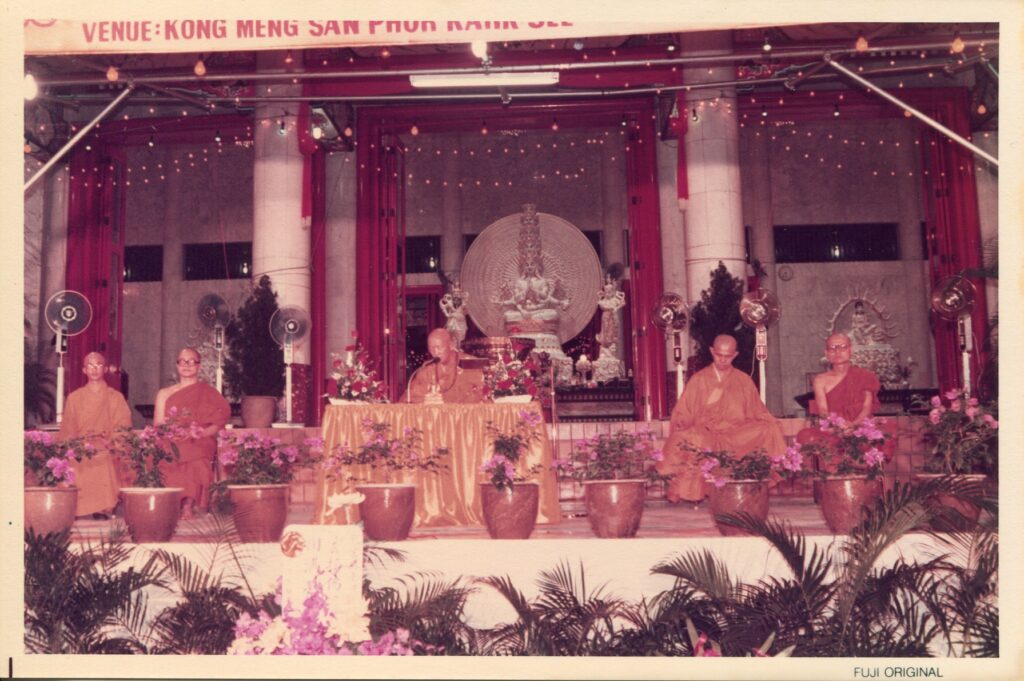 Venerable Seck Hong Choon initiated the Grand Diamond Gem Repentance Puja in 1981 to attract residents from Ang Mo Kio New Town to practice Buddhism. In 1983, he led the Singapore Buddhist Federation (SBF) in organising a Buddhist Artefacts Exhibition at KMSPKS and invited the then President and Mrs. C V Devan Nair to the Opening Ceremony. The symbolic “Three Steps, 1 Bow” (三步一拜) ceremony was held for the first time at KMSPKS in 1984. In 1985, Venerable Seck Hong Choon received a visit from Her Royal Highness, Princess Sirindhorn of Thailand, where she offered robes presented by His Eminence the Supreme Patriarch of Thailand. Venerable Seck Hong Choon later invited the Deputy Supreme Patriarch of Thailand to visit and officiate the foundation-laying ceremony for the Pagoda of 10,000 Buddhas at KMSPKS. Venerable Seck Hong Choon also organised the first short-term novitiate programme at KMSPKS in the same year. In 1986, he organised a mass puja for the deliverance of victims who lost their lives in the New World Hotel disaster.